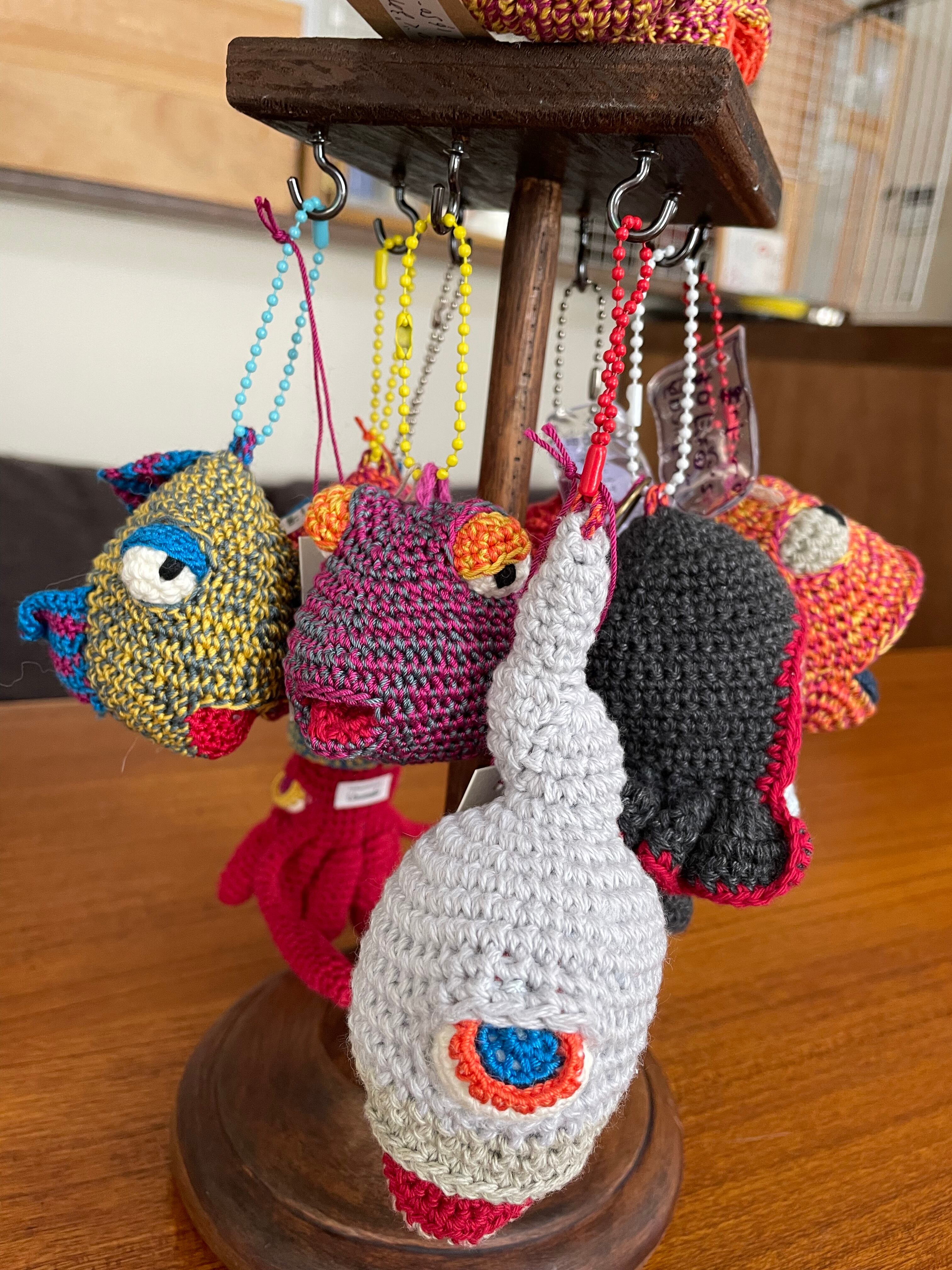とぼけたお顔が可愛らしいおさかなあみぐるみです。
