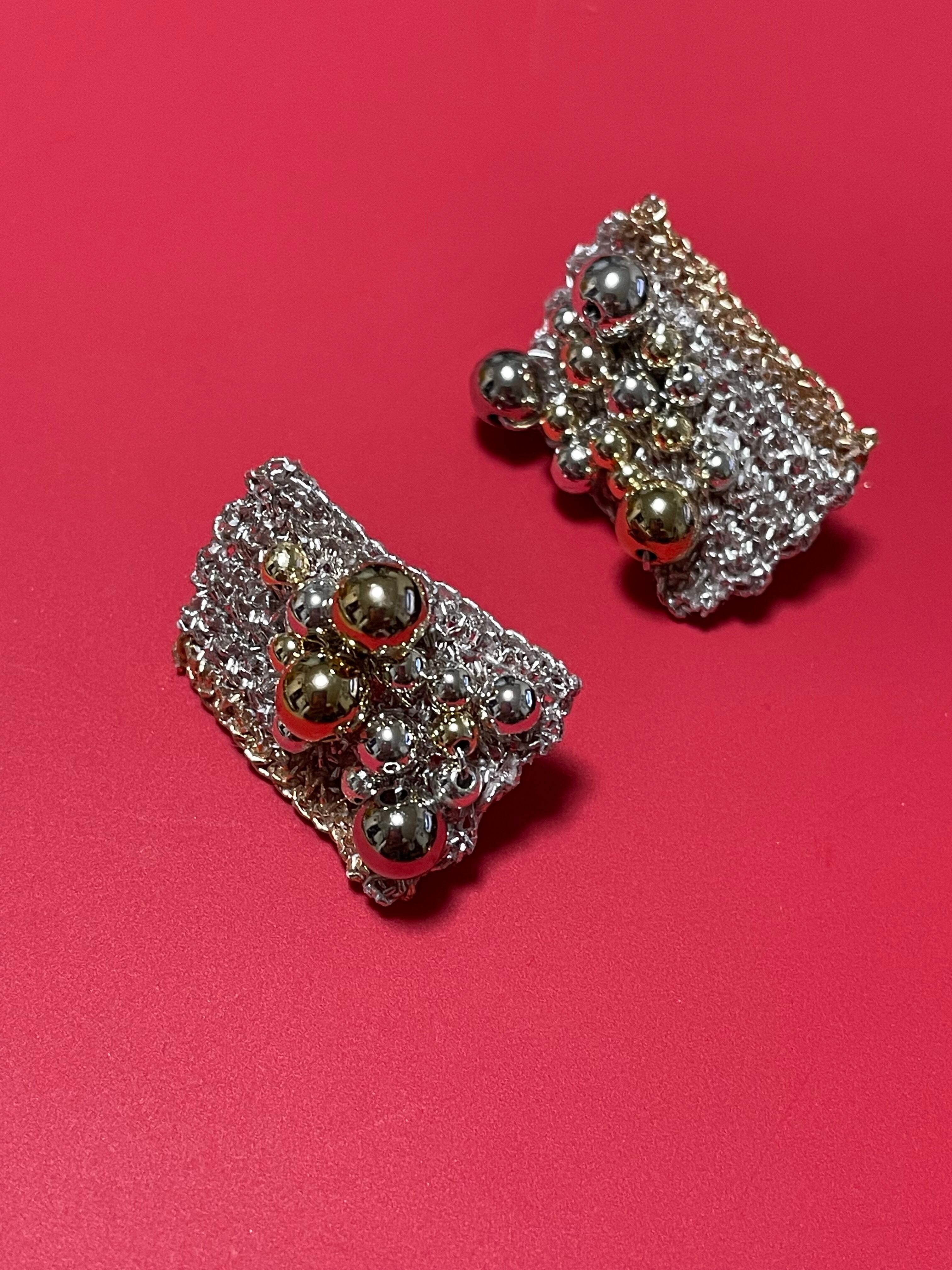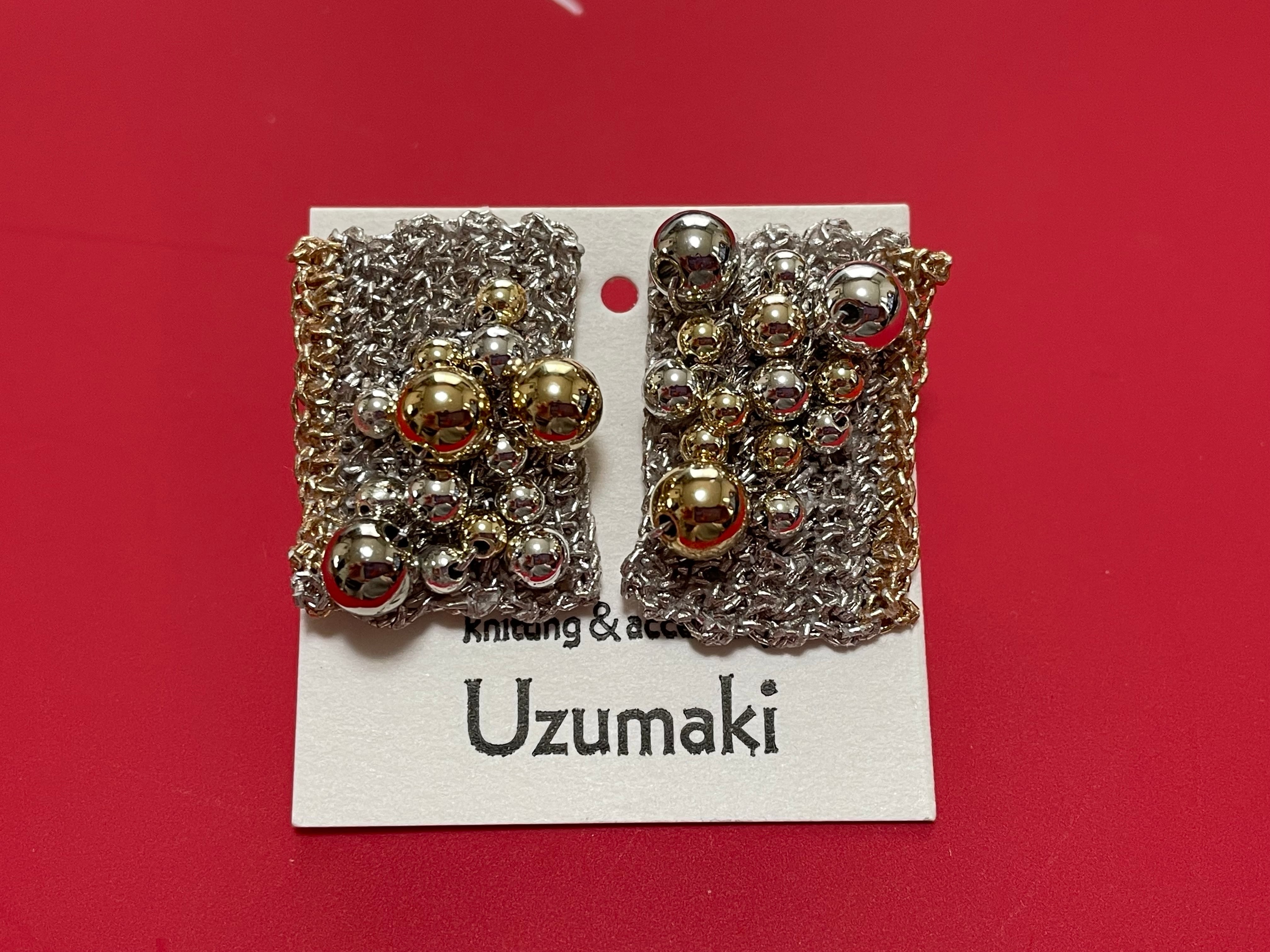 シルバーのあみじにゴールドやシルバーのつぶが良いアクセントのピアスです。